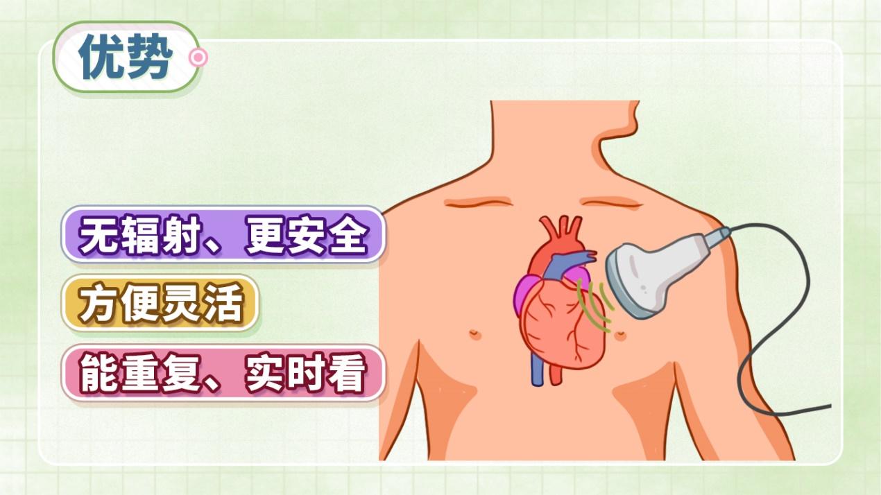 它可以反复做,比如治疗后想复查心脏变化,随时都能安排;而且检查时能“实时显示”心脏的跳动和工作情况,这一点是 CT、核医学检查做不到的。