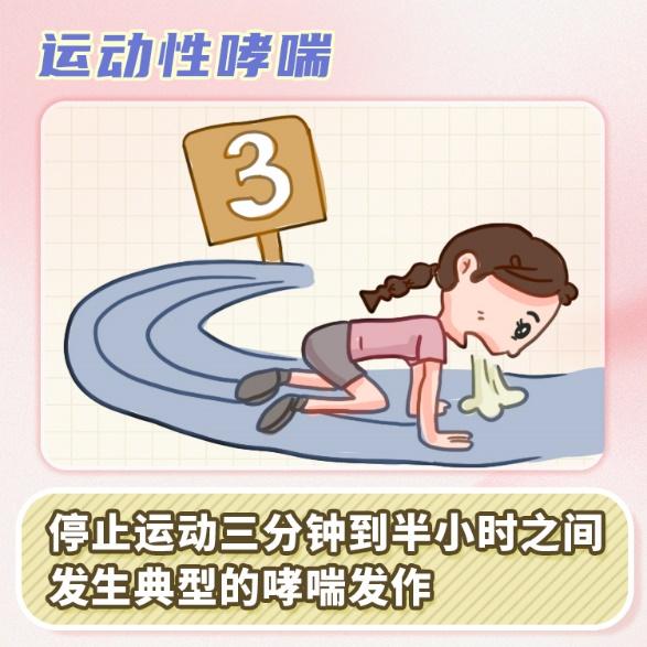 运动性哮喘主要诱因是剧烈运动,典型的运动性哮喘是在停止运动三分钟到半小时之间出现典型的哮喘发作,比如出现剧烈的咳嗽、胸闷、憋气等症状。而且这种胸闷、咳嗽、憋气的症状会在半小时到一小时内自行缓解,或通过药物缓解。尤其是儿童,在跑步的过程中没有问题,停下来以后出现剧烈、刺激性咳嗽,感觉喘不上气。另外,因为儿童胸壁比较薄,不用听诊器也可以听到哮鸣音、痰声。