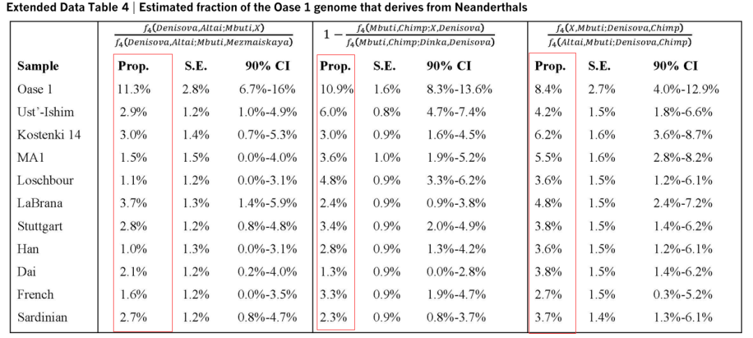 尼安德特人基因在减少,看图中标红的比例,其中oase1是一个4万年左右的罗马尼亚人