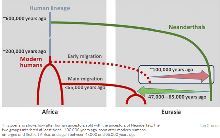走出非洲的智人和尼安德特人相见恨晚,于是相爱相杀!经过了两三万年的亚种“大融合”!