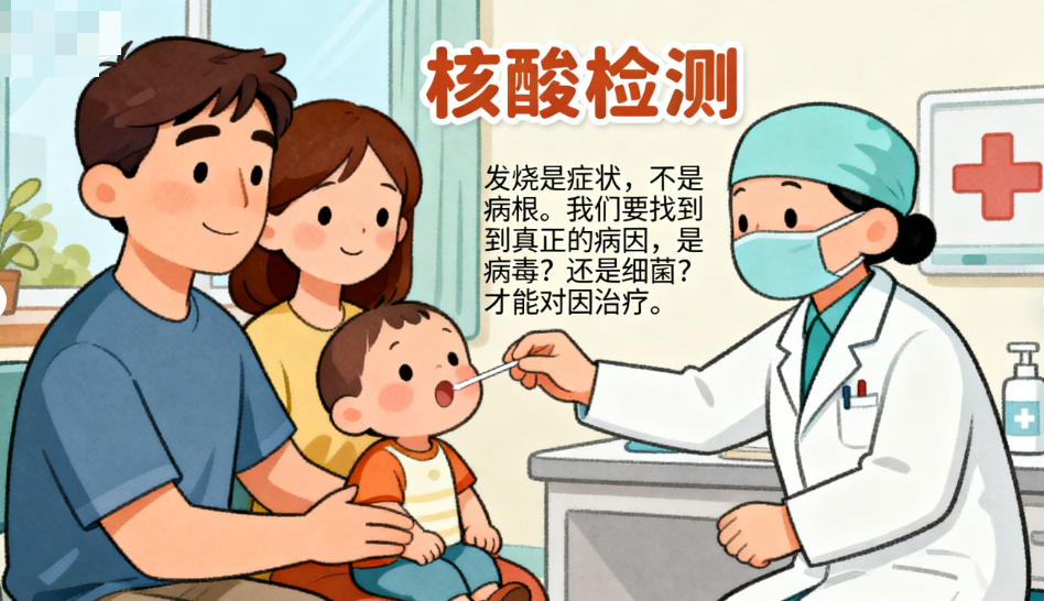 发热是症状而非疾病,我们在给孩子退烧的同时也要积极地去寻找病因。必要时就医取相应的标本做核酸检测,锁定病因对因治疗。