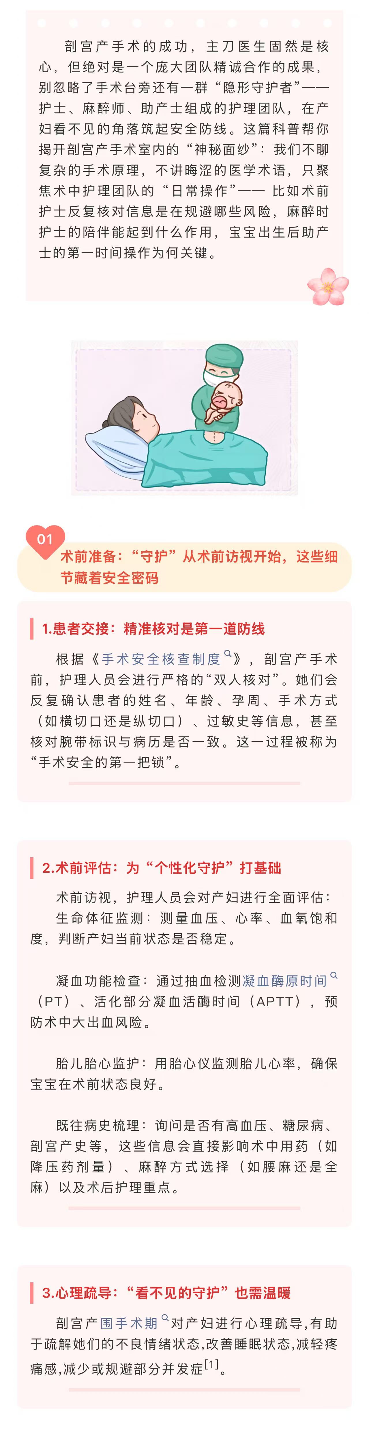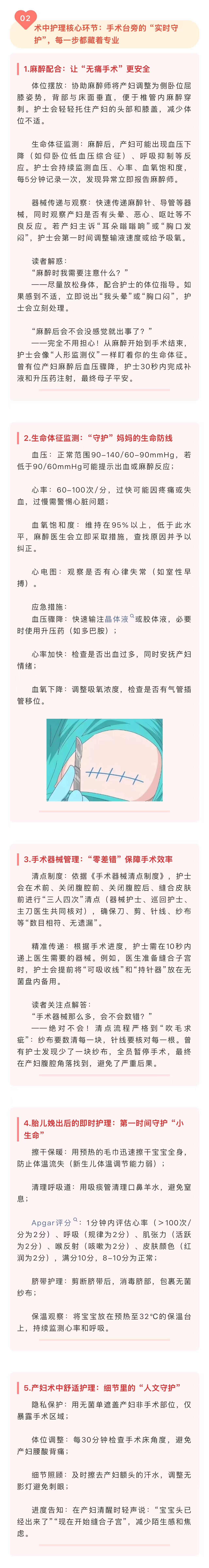 图文简介: 剖宫产手术的成功,主刀医生固然是核心,但绝对是一个庞大团队精诚合作的成果,别忽略了手术台旁还有一群 “隐形守护者”—— 护士、麻醉师、助产士组成的护理团队。