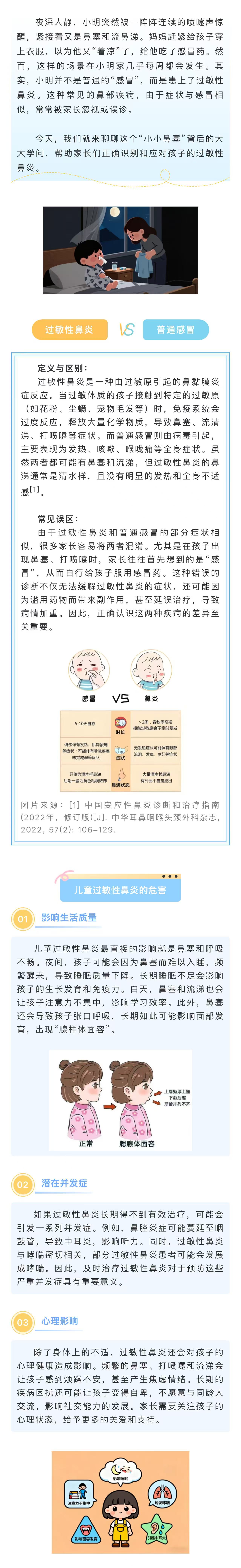 图文简介: 儿童过敏性鼻炎虽然常见,但绝不能掉以轻心。正确识别和科学治疗是关键,家长应积极学习相关知识,与医生密切合作,共同守护孩子的健康。