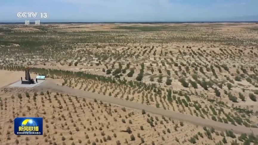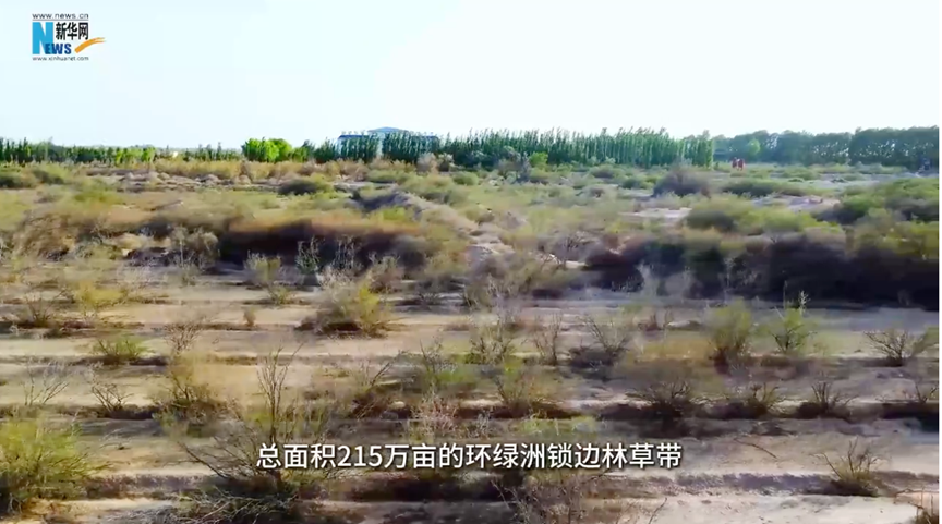 今年5月,一条总长逾380公里、总面积215万亩的环绿洲林带完成锁边闭环。