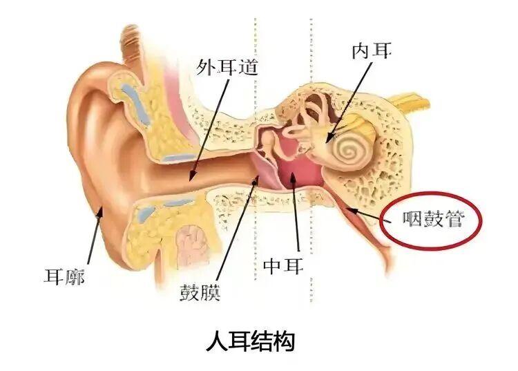 中耳腔通过“咽鼓管”(接鼻子和耳朵的通道)与鼻咽部相连。流感病毒或继发细菌会导致鼻咽黏膜水肿、咽鼓管堵塞,使中耳腔通气受阻、排液不畅,积液滞留后容易感染发炎。