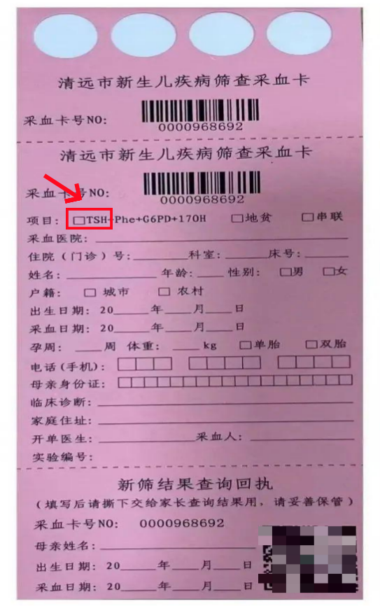 目前我国已将先天性甲减纳入新生儿疾病筛查的必查项目,所有新生儿在出生后都会采集足跟血进行检测,主要查“促甲状腺激素(TSH)”。
