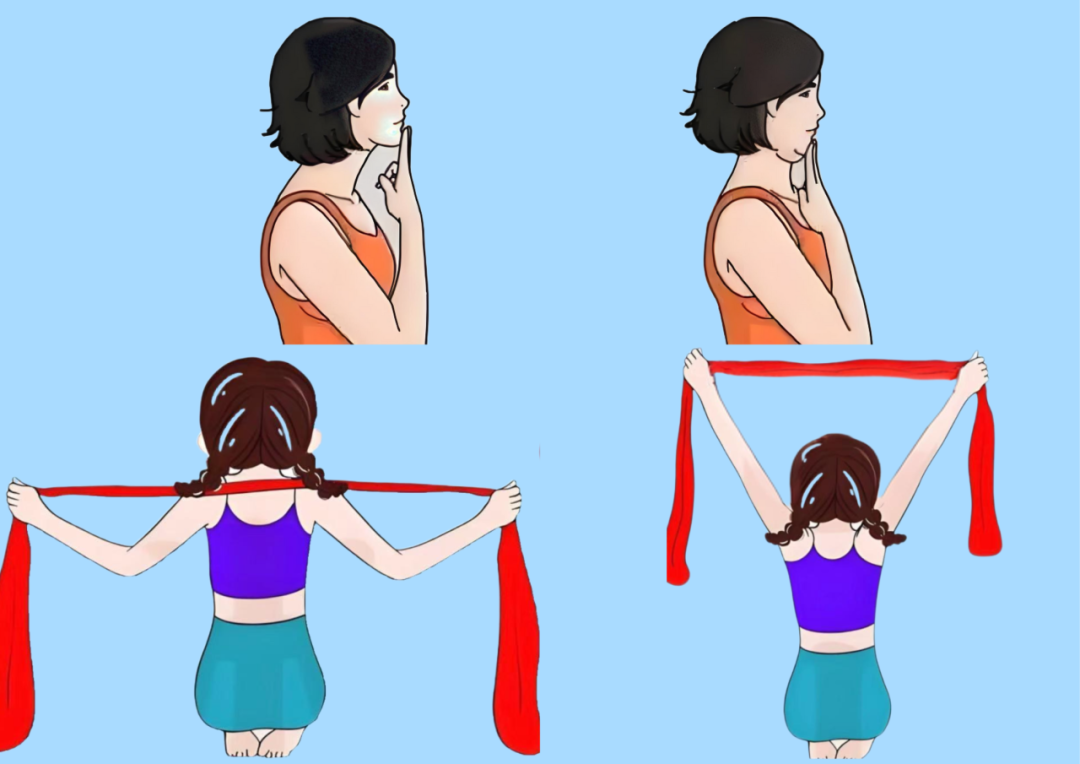 靠墙点头:后背贴墙,收下巴做点头动作,每天20次。