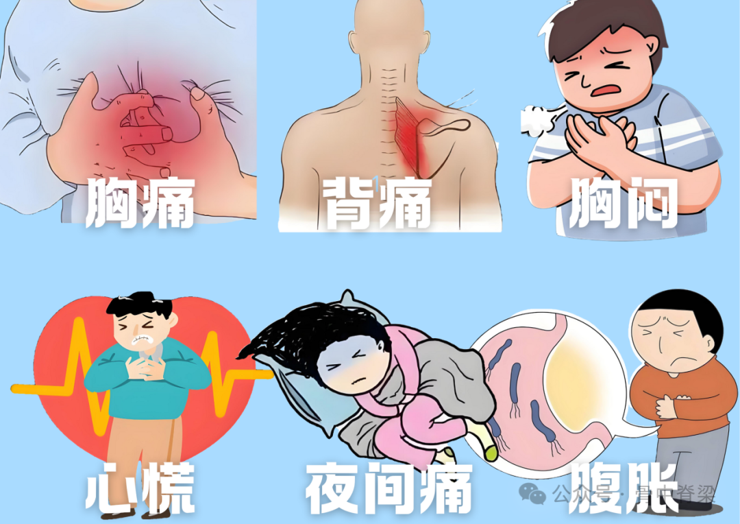 交感神经紊乱:引发胸闷、心慌、胃胀等内脏症状。
