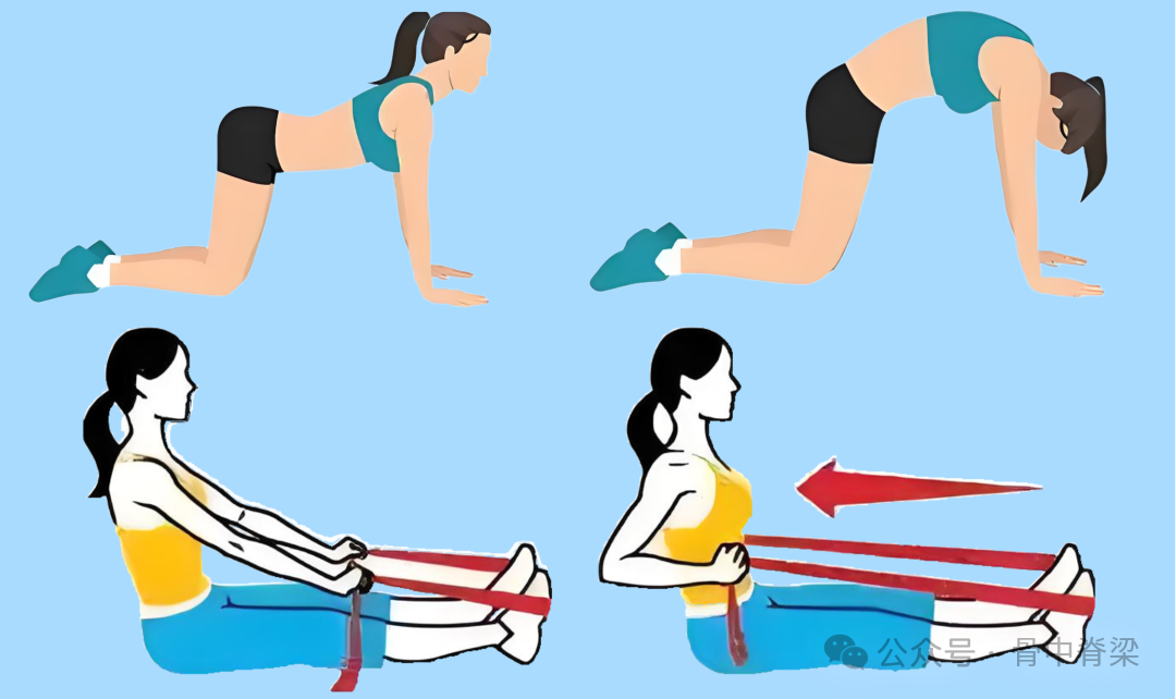 猫驼式训练:跪姿交替拱背和塌腰,激活胸椎灵活性;