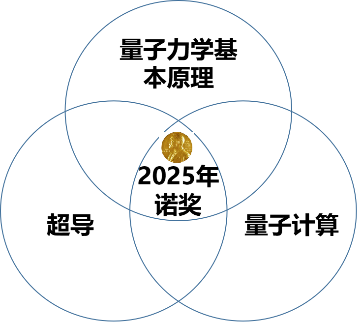 包括超导量子计算领域的诸多专家都表示,今年的诺奖“有点早”,而事实上诺奖的工作是40年前完成的,但如果考虑到并不是因为超导量子计算而获奖,而是因为宏观量子效应和电路量子化能级的基础科学意义,就不会感觉有点早, 这样可以把今年的诺奖理解为量子力学基本原理、超导和量子计算的交叉部分,如下图: