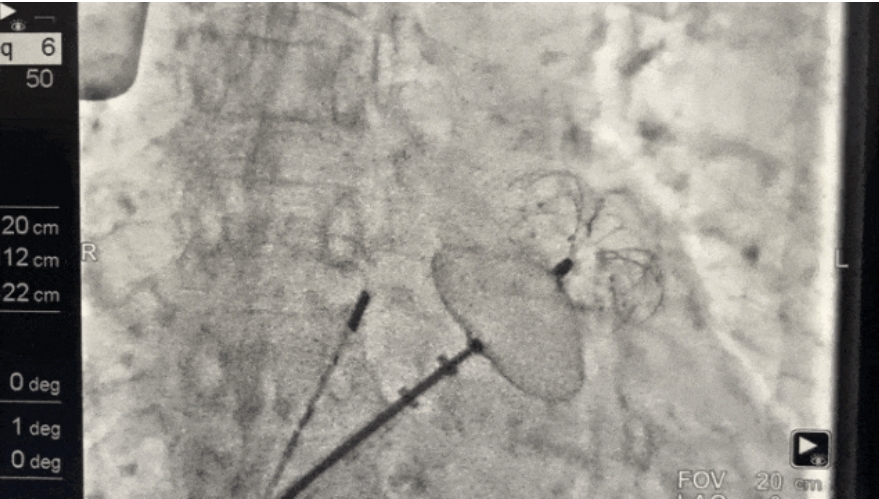 ▲封堵器展开,左心耳血栓封堵手术成功