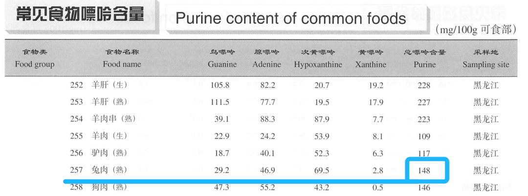 需要注意的人群主要是痛风及高尿酸血症患者,和所有肉类一样,兔肉也属于中等嘌呤含量的食物,每 100g 含有 148mg 嘌呤[1],急性发作期应避免食用,稳定期可少量食用。