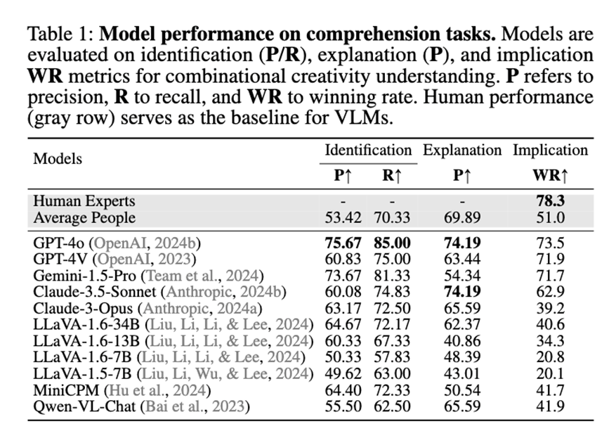 通过对11个主流AI模型的系统测试,研究团队绘制出了一幅详细的“AI创造力能力图谱”,揭示了机器智能在创造力理解上的真实水平。