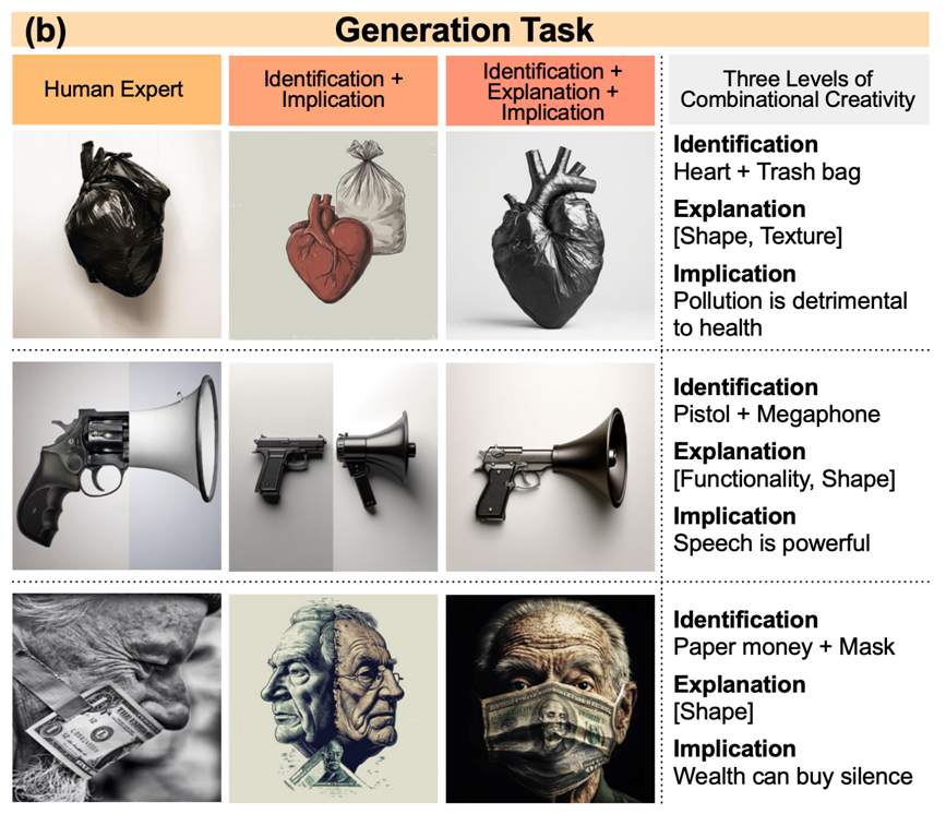 1. Peng, Yongqian and Ma, Yuxi and Wang, Mengmeng and Wang, Yuxuan and Wang, Yizhou and Zhang, Chi and Zhu, Yixin and Zheng, Zilong. "Probing and Inducing Combinational Creativity in Vision-Language Models." CogSci, 2025. https://escholarship.org/uc/item/4fj0m0cw