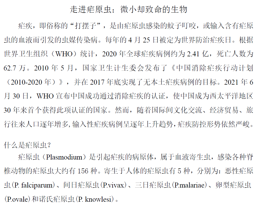 走进疟原虫:微小却致命的生物
