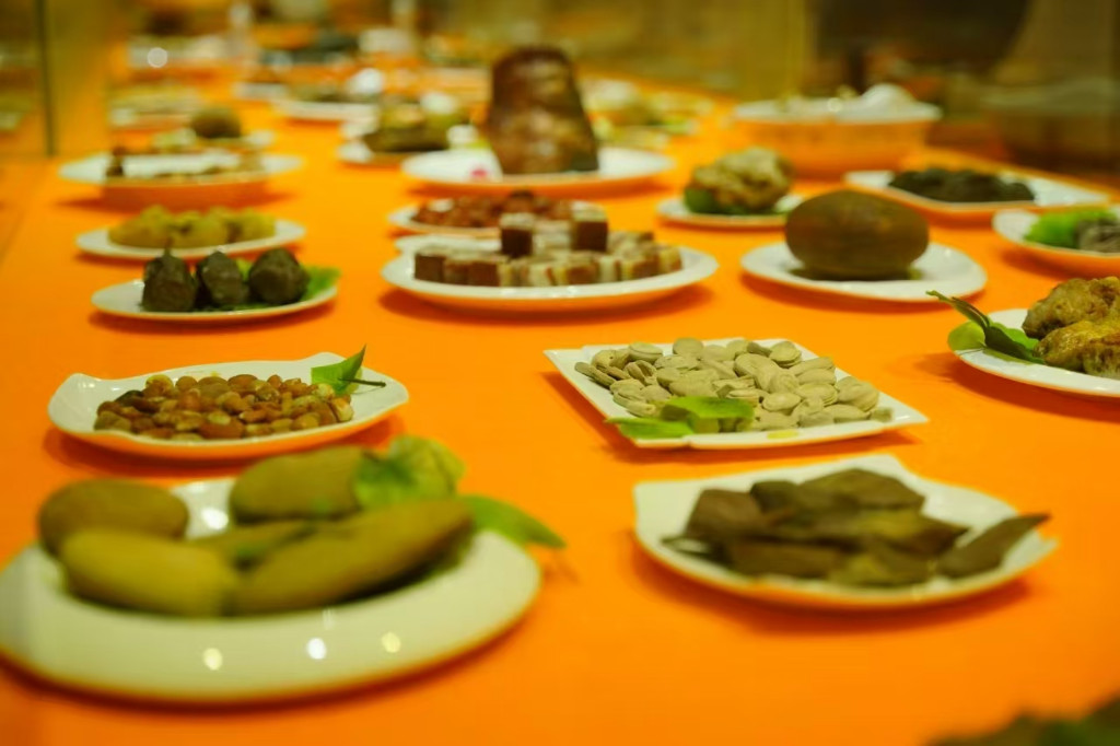 移步奇石馆,由108块戈壁石精心打造的"石"全"食"美宴令观者"垂涎欲滴"。这些戈壁石历经风沙雕琢,每一块都形态各异、色彩斑斓。它们被巧妙地组合在一起,栩栩如生地呈现出各类美食的模样,从精致的糕点到新鲜的果蔬,一应俱全,让人不得不惊叹大自然的鬼斧神工与人类创意的完美结合。