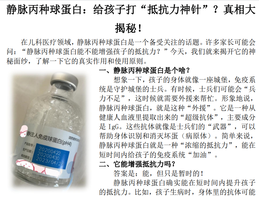 静脉丙种球蛋白:给孩子打“抵抗力神针”?真相大揭秘!