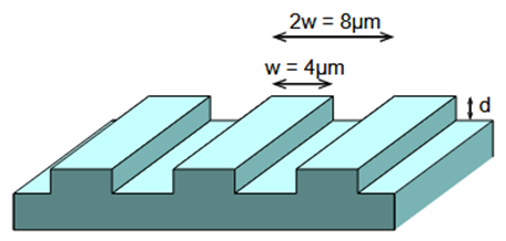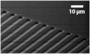 图1:科学家制作的‘微观搓衣板’,沟槽的宽度比单个细胞还小。