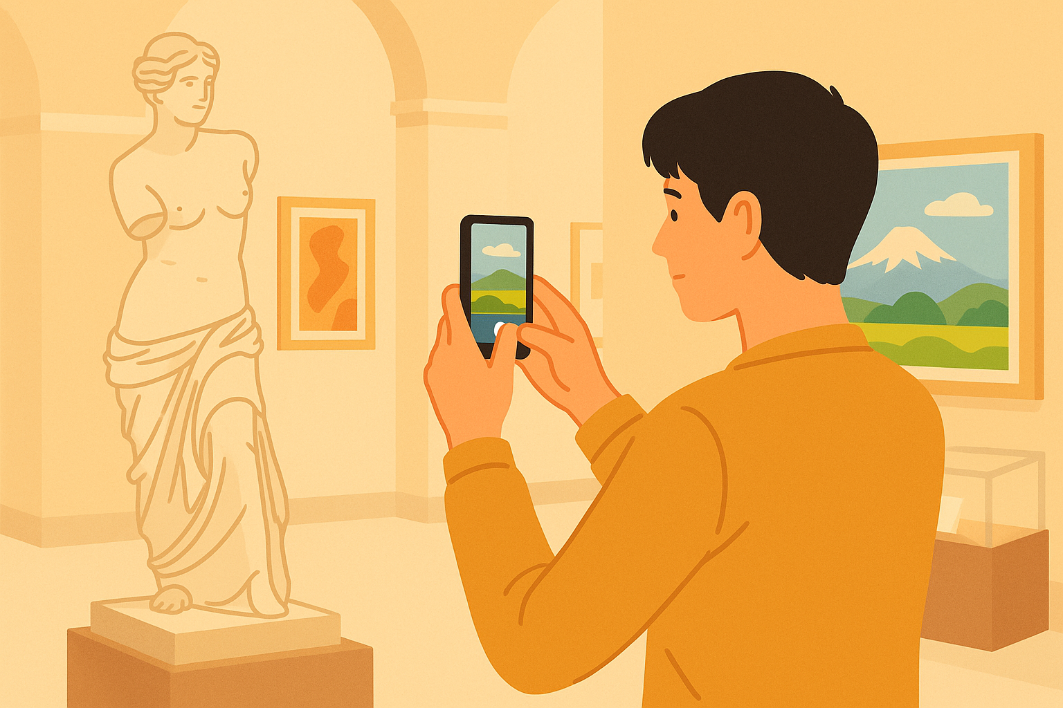 在博物馆拍摄展品实验(图片来源:作者使用AI生成)