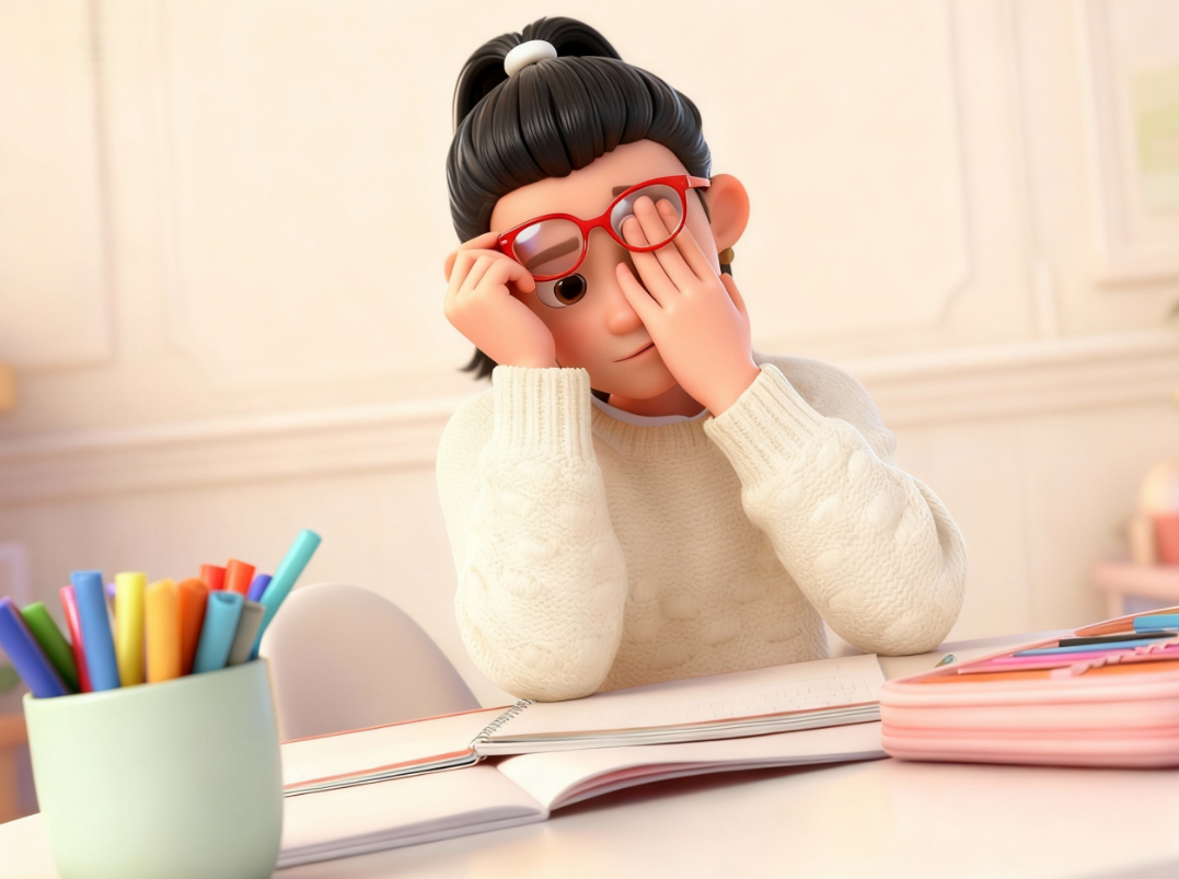 这是隐性斜视主要表现。由于双眼需持续调节以维持视轴对齐,眼周肌肉长期处于紧张状态,类似人体持续踮脚站立,易产生疲劳感。尤其在长时间近距离用眼(如阅读、使用电子产品、写作业)后,不适症状会加重,具体可表现为眼睛酸胀干涩、畏光,甚至眼眶及眼周肌肉酸痛。