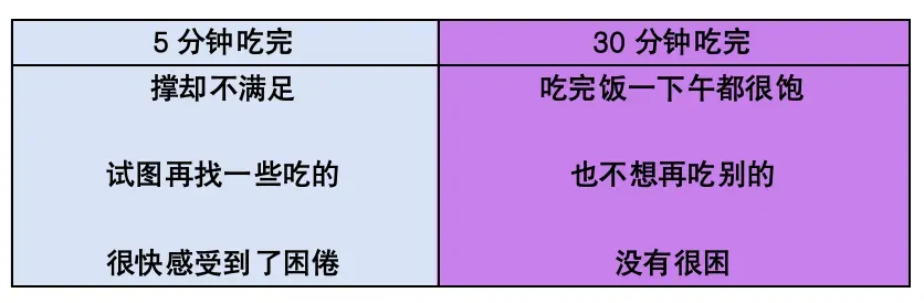 2022年,有机构曾做过一个实验,同样的饭菜,一位参与者5分钟吃完;另一位参与者花费30分钟吃,看看有什么区别。