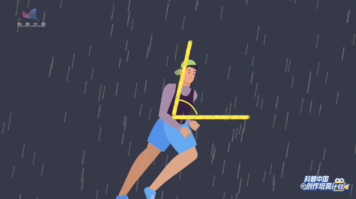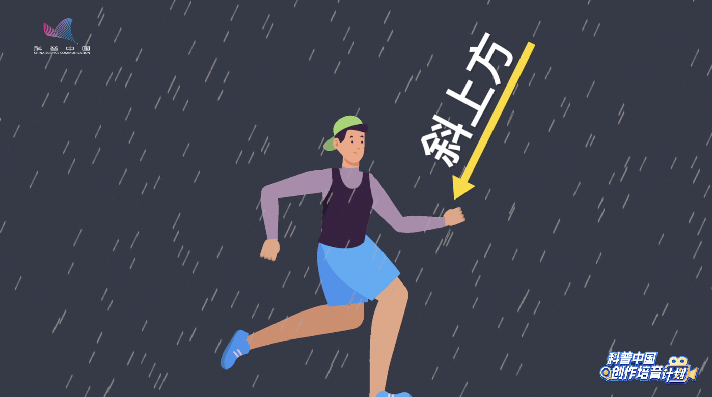 还有人在跑步的时候,身体跟地面不是垂直的,而是会有一个前倾。如果你能保证这个前倾的角度刚好跟雨滴砸下来的角度一致,那么理论上你身体前面和后面是几乎不会淋到雨的,就只有肩膀和头顶。然后你以这个倾斜角度,用最快的速度跑回家,这种情况淋雨量肯定是最少的。或者你干脆把身体横过来,让雨滴落在你身体的侧面,减少受雨的面积,然后用交叉步跑回家这也可以。就是容易滑倒,建议不要轻易尝试。