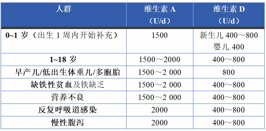 中华预防医学会儿童保健分会. 中国儿童维生素A、维生素D临床应用专家共识(2024)[J]. 中国儿童保健杂志. 2024,32(4):349-358,361.