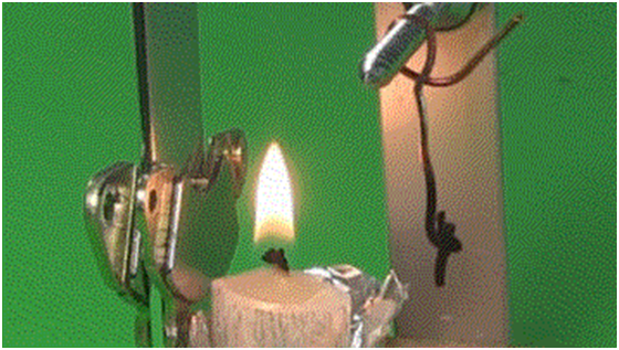图2:居里温度实验动画,当镍周围温度达到居里温度,会失去磁性。动画中来回摆动的为镍块,蜡烛的左侧为磁铁。镍块在磁铁磁场作用下产生磁性,向磁铁运动,当靠近火焰,达到居里温度后,失去磁性,远离磁铁。此过程不断重复,镍块来回摆动。来源:https://rimstar.org/science_electronics_projects/curie_temperature_ferromagnetism_experiment.htm