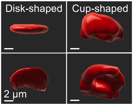 扁平圆盘状(左列)与杯状结构(右列)叶绿体模型图(图片来源:参考文献[1])