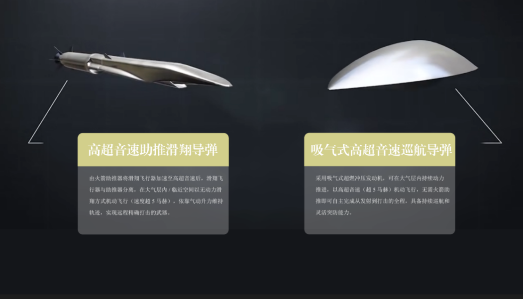 高超音速导弹主要可分为两大类:高超音速助推滑翔导弹和吸气式高超音速巡航导弹。
