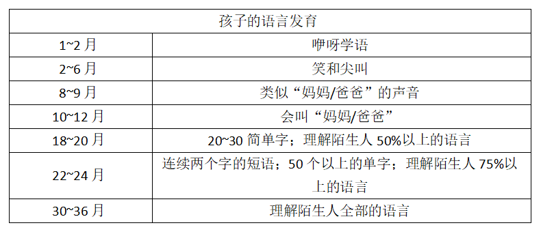 每个阶段的语言能力都有参考线,对照表格看看你家宝贝是否达标:
