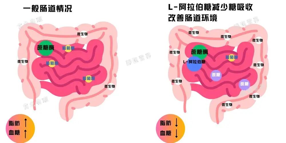 而L-阿拉伯糖恰恰具有抑制蔗糖酶作用,减少糖类吸收,减轻代谢负担,进而稳定血糖、控制体重。