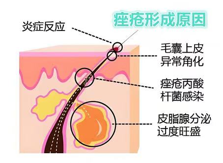 很多人以为长痘只是 “油脂分泌多”,其实痤疮的成因很复杂,是皮肤油脂、毛囊角化、细菌感染、炎症反应共同作用的结果,还与这些因素相关: