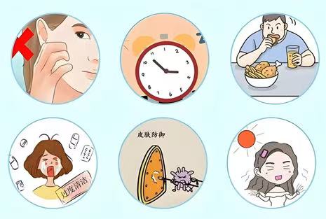 生活习惯:高糖、高脂饮食(如奶茶、油炸食品)会加重油脂分泌;频繁用手摸脸、挤压痘痘,会让细菌扩散,加重炎症;使用油腻的护肤品、化妆品,也可能堵塞毛孔。