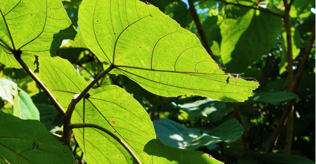 大果榕(Ficus auriculata Lour.)属桑科榕属,是一种常绿小乔木,广泛分布于我国华南及西南地区的热带、亚热带雨林中,其叶片呈阔心形,叶面宽阔,质地厚实,最大的叶片甚至可达半米长。