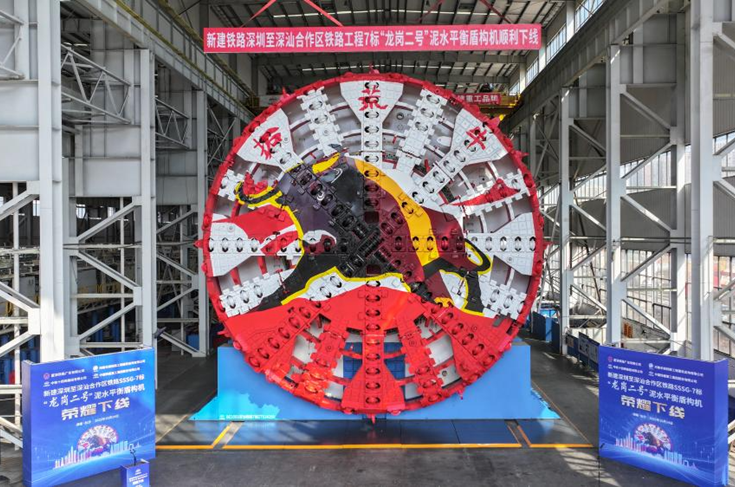 10月24日,由中铁十四局和铁建重工集团联合打造的“龙岗二号”盾构机在湖南长沙下线,将应用于深汕高铁龙岗隧道建设。深汕高铁是粤港澳大湾区首条由单一城市全资建设、设计时速350公里、连接深圳核心区与深汕特别合作区的城际高速铁路。线路全长125.5公里,起自深圳枢纽西丽站,终至深汕特别合作区深汕站,连接深圳西丽站、罗湖北站、深圳坪山站、深汕站四大交通枢纽,是国家《中长期铁路网规划》“八横八纵”高铁主通道中沿海高速通道的重要组成部分,是完善粤港澳大湾区轨道交通建设的重点工程。