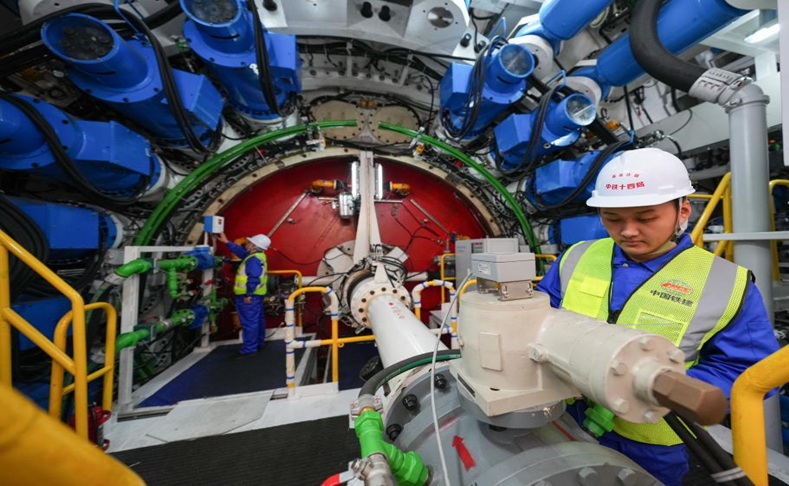 盾构机被称为“地下工程之王”。这台盾构机整机长约117米,总重量约3600吨,开挖直径14.31米,它配备了超前地质预报、刀具检测与地层感知等掘进辅助系统,并具备高效的出渣与衬砌能力,能在复杂地层中实现智能化掘进,提高施工的安全性与效率。