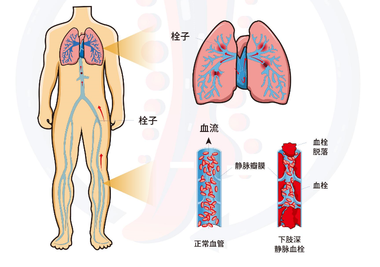 这个“堵塞”如果发生在腿部的深静脉,就叫做深静脉血栓(DVT)。患者可能会感到腿部肿胀、疼痛。更可怕的是,这个“堵车”的血块有时会脱落,顺着血流一路“狂奔”,最终可能堵住通往肺部的关键路口,引发肺动脉栓塞(PE)。这是一种可能致命的急症,会引起胸痛、呼吸困难,甚至猝死。