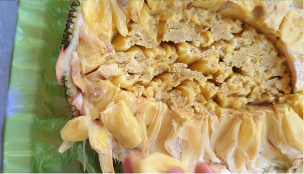 打开这个庞然大物,你会发现它内部别有洞天。我们日常吃到的这个果肉,准确说法也叫“果苞”,它也分“性格”。一种是“干包”,果肉含水量低,口感Q弹爽脆;另一种是“湿包”,果肉绵软多汁,香气更为浓郁。湿包打开后,不即时食用就会变得非常软烂,不利于储存,而且由于果肉纤维较多,适口性不佳,因此湿包一般只在原产地才吃得到,而我们在市场上能买到的大多是果肉厚实滑嫩的干包。吃完波罗蜜的果肉,可别丢掉里面的种子!只需要把这些种子放入水中煮熟后便可以吃,口感粉糯香甜,口感宛如栗子。