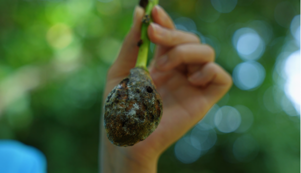 这听起来有点不可思议,因为雌花序并不会给瘿蚊提供任何花蜜或花粉作为报酬。那瘿蚊凭什么为它打工?秘密,藏在雄花序身上。波罗蜜的雄花序在散完花粉后,并不会马上凋零,而是会被一种特殊的霉菌侵染。这种霉菌长出的菌丝,恰恰是瘿蚊幼虫绝佳的口粮!于是,雄花序就变成了一个“育婴房”,吸引雌性瘿蚊前来产卵。