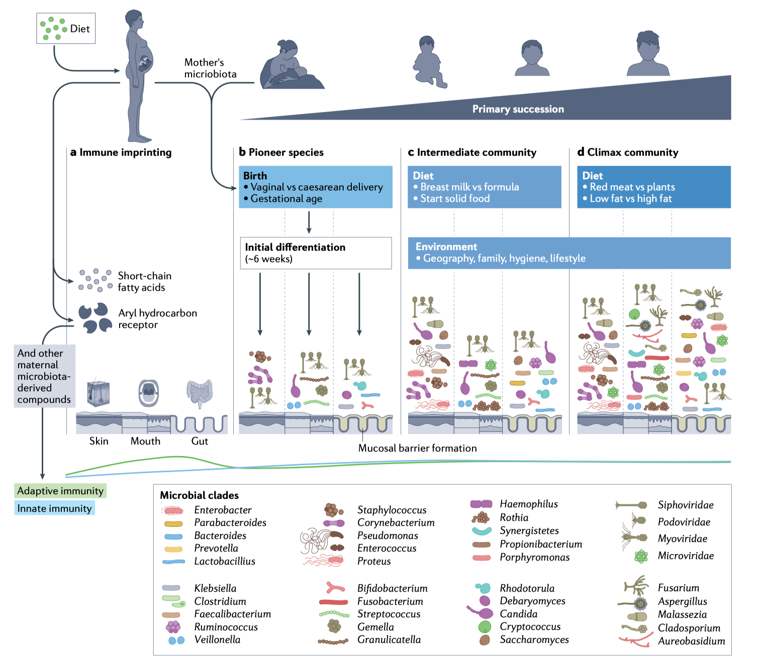 Martino, C., Dilmore, A. H., Burcham, Z. M., Metcalf, J. L., Jeste, D., & Knight, R. (2022). Microbiota succession throughout life: from the cradle to the grave. Nature Reviews Microbiology, 20(12), 753–774. https://doi.org/10.1038/s41579-022-00768-z
