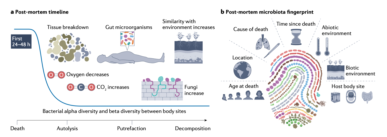 研究者发现,这一过程的时间轨迹极为稳定,可作为法医推测死亡时间的“微生物时钟”。