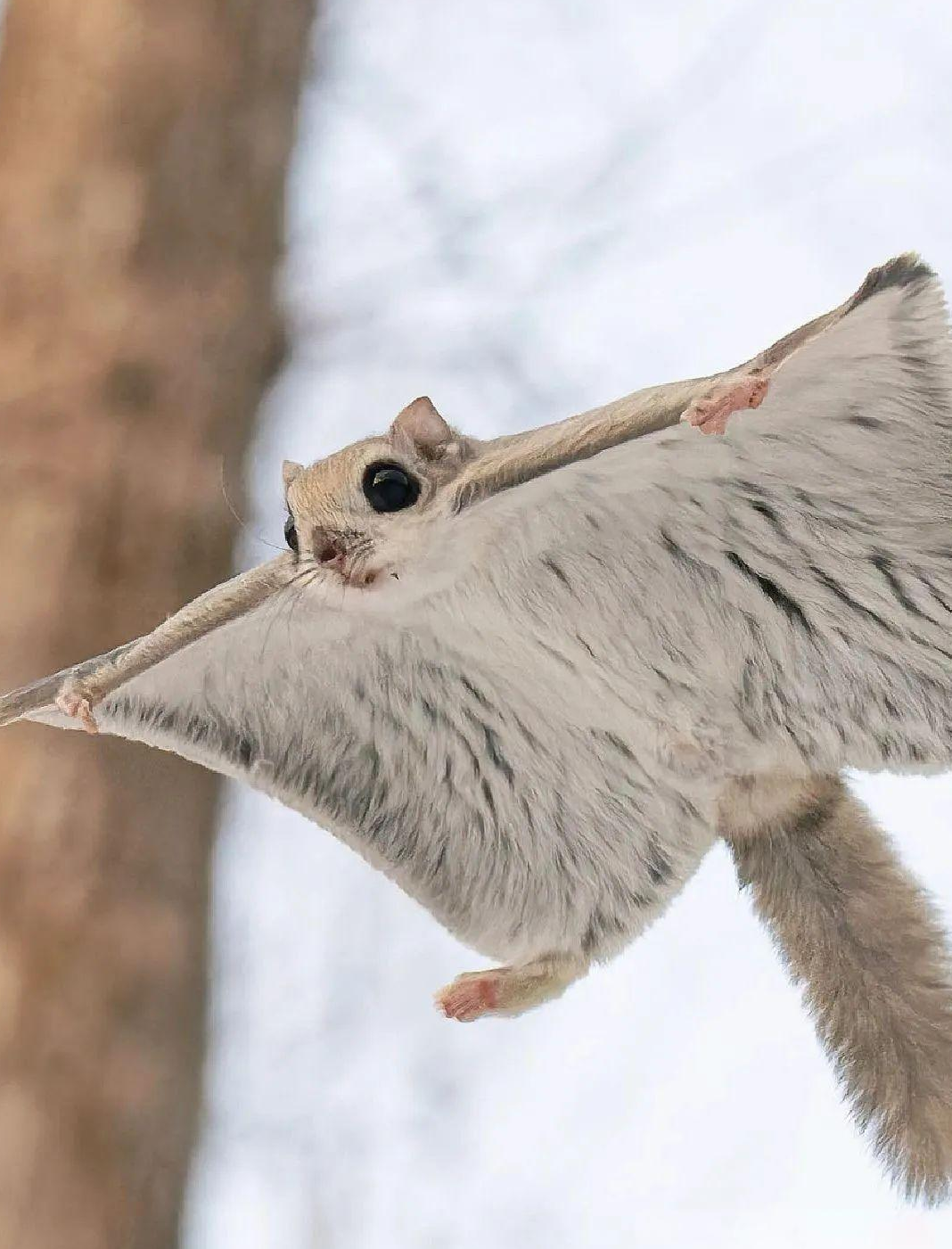 鼯鼠展开皮膜在林间滑翔(图片来源:[1])