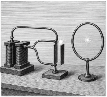 直到1887年,德国物理学家赫兹(Heinrich Rudolf Hertz)才通过实验证实了电磁波的存在。他利用电感线圈与金属环设计了一个巧妙的实验装置,利用电感线圈与两个铜球电容组成发生器,金属环被放置在电感线圈附近当作接收器。在实验中发现,当电感线圈产生电火花时,金属环的间隙中也会出现电火花。这是因为电感线圈产生的变化电流会产生变化的电场和磁场,也就是电磁波,当电磁波传播到金属环时,在金属环中产生了感应电流,从而出现电火花。赫兹的实验不仅证实了麦克斯韦的理论,还为无线电技术的发展奠定了基础。