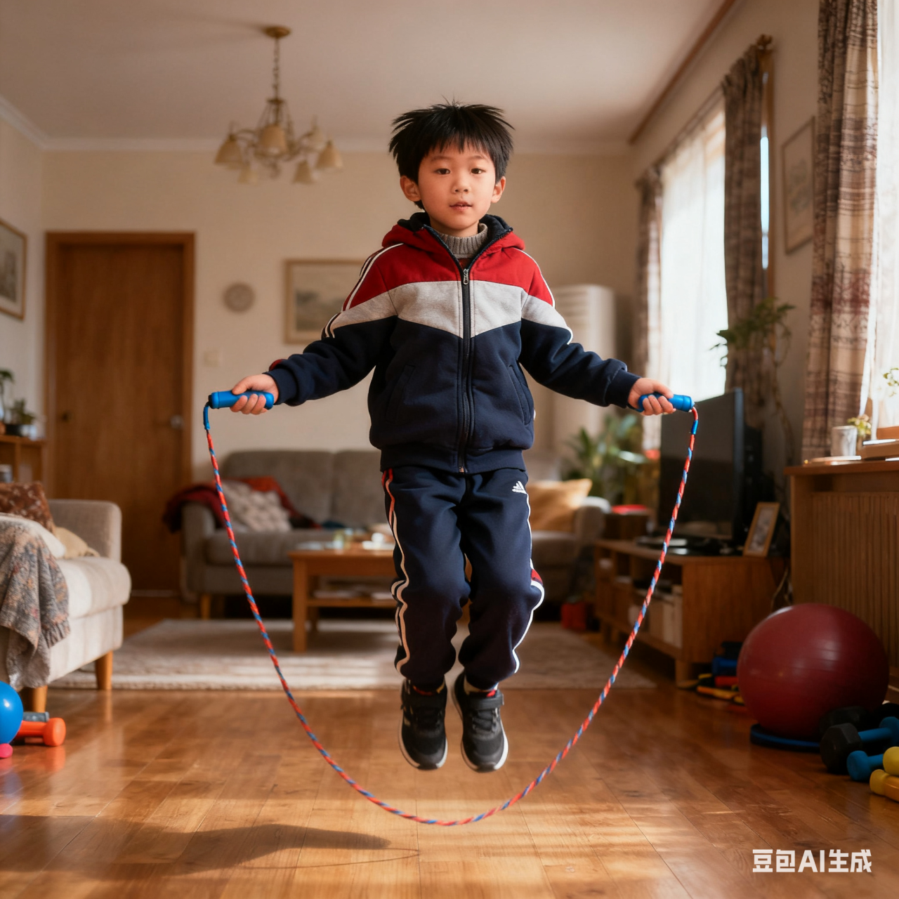 跳绳500下+摸高跳50次,纵向冲击刺激骨骺;室内冷可原地跳,同样有效