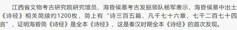 11 月 8 日,南昌召开了一场名叫“南昌汉代海昏侯墓考古发掘成果公布十周年暨汉代区域文化学术研讨会”的学术会议。会后,有记者喜滋滋发布了一则大新闻:海昏侯墓竟然出土了完整的《诗经》!