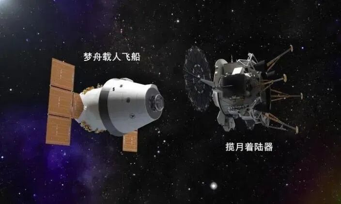 “梦舟”登月载人飞船与月面着陆器先后抵达环月轨道后,将在月球附近交会对接。这一步至关重要,此时,参与登月任务的航天员将从载人飞船转移到月面着陆器上。由于“梦舟”飞船可搭载3名航天员,但是月面着陆器只能容纳两名航天员,所以这时候有一人要留在“梦舟”飞船,另外两人进入月面着陆器,留守飞船的航天员将在环月轨道上提供全程监测和支援。