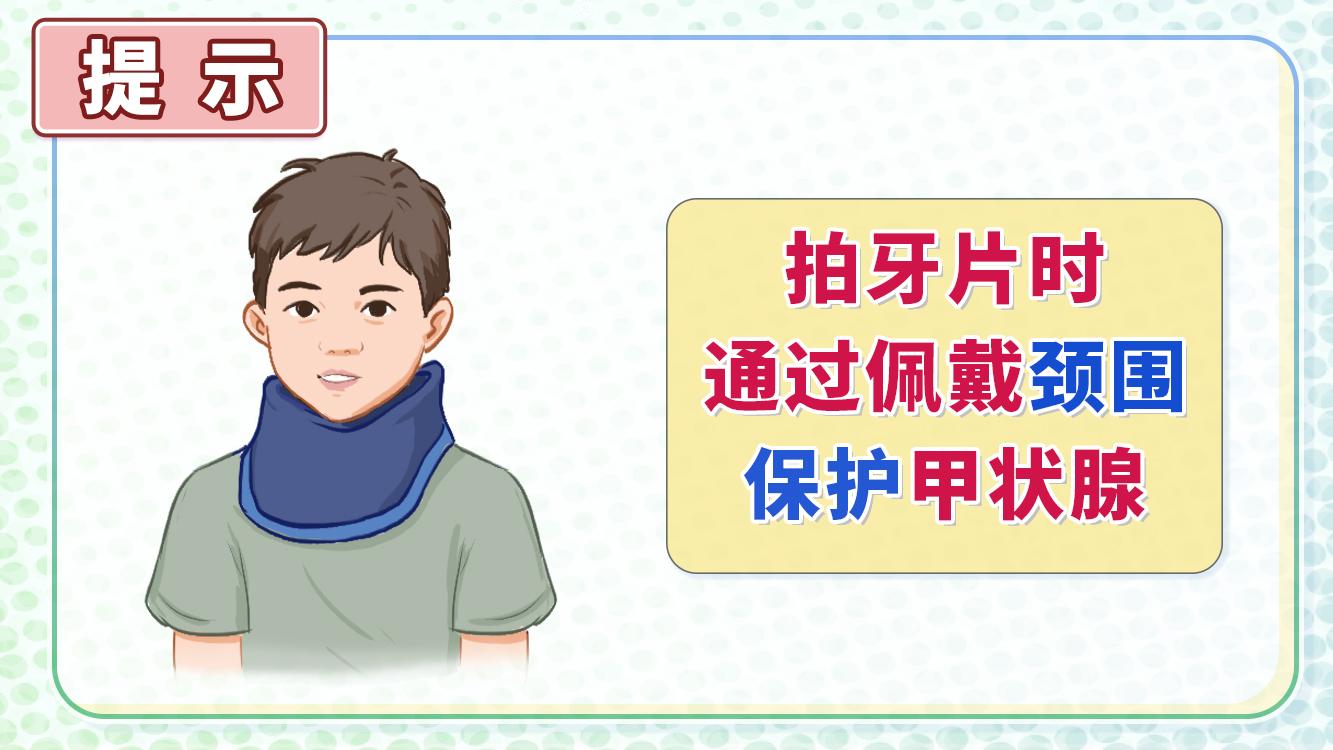 而人体对辐射最敏感的器官是甲状腺,所以拍任何牙片或CT时,医生都会给患者戴一个“颈围(脖套)”,把甲状腺部位牢牢护住,这里要提醒大家,戴“颈围”时别图省事只搭一半,一定要往上拉,至少覆盖到下巴下方,像围围巾一样裹紧,否则甲状腺暴露在外,防护就没意义了。再看CT,虽然牙科CBCT比大CT辐射小,但还是比根尖片高(大约相当于十数张到数十张根尖片的剂量),所以医生不会随便建议拍CT,只有在根尖片无法诊断和治疗需要时才会拍摄CT片,大家应遵医嘱检查。