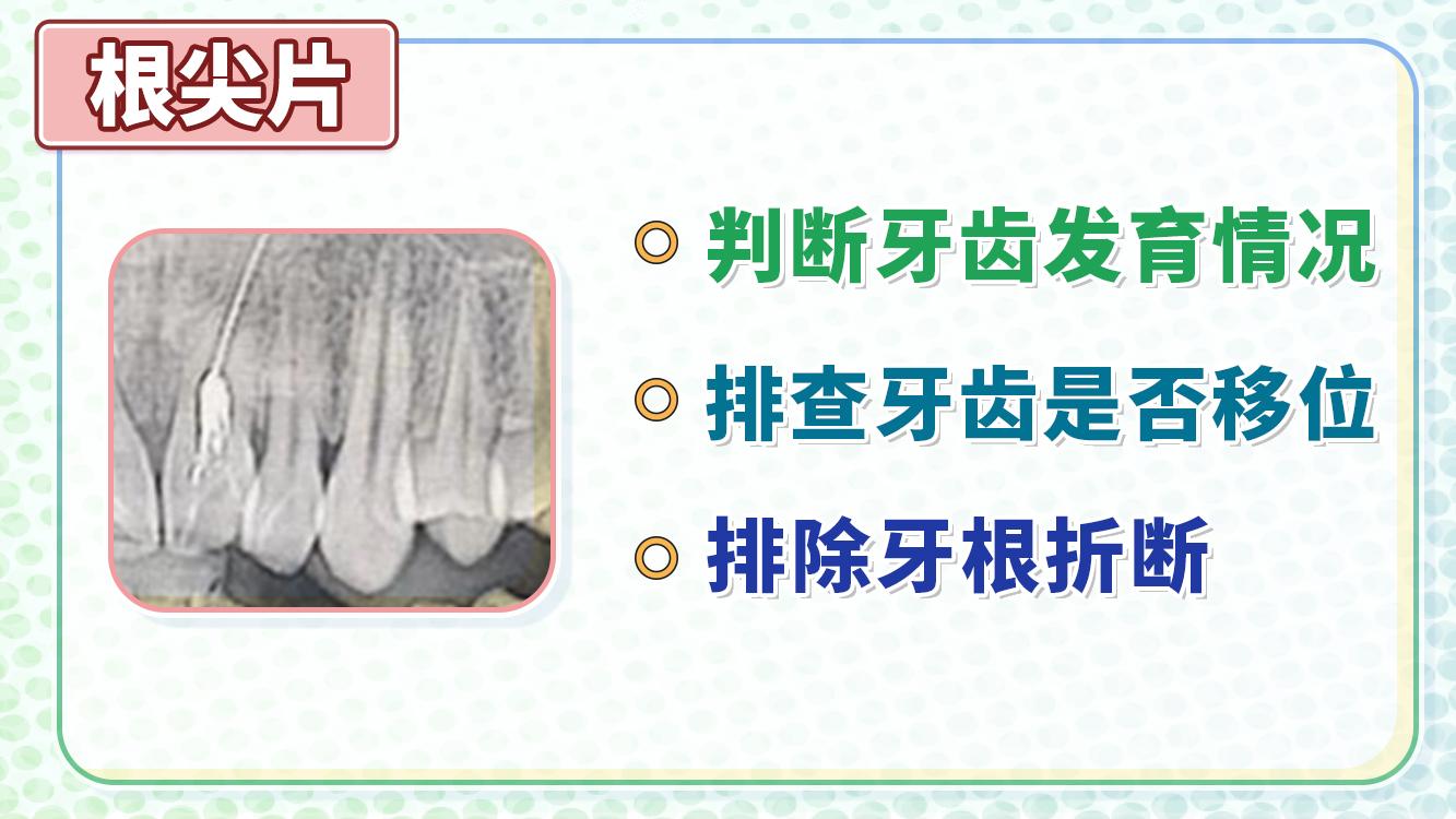 根尖片还可以帮助排查牙齿是否有移位。牙齿受外伤后,有时看起来没歪,但可能已经在牙槽骨里发生了细微移位,这种轻度移位在口腔内常难以察觉,医生可以在根尖片观察到牙根与牙槽骨之间的间隙变化,哪怕是微小的间隙改变,都能及时发现。