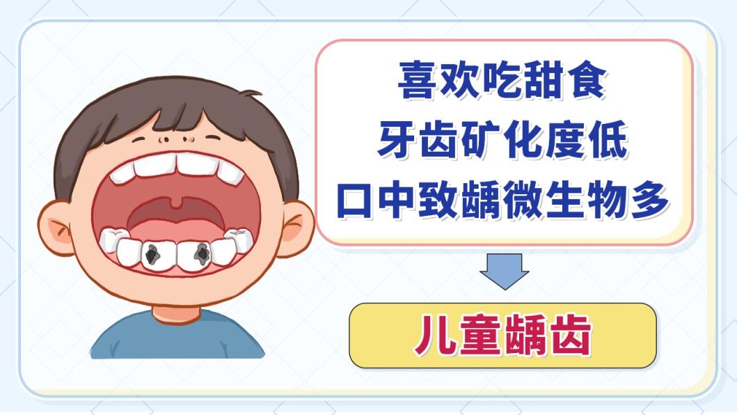 首先,儿童的食物特点也容易让他们患上龋齿。小朋友大多喜欢吃含糖量高的食物,而这些含糖食物很容易被口腔里的致龋微生物利用,微生物分解这些食物后会产生更多的酸和毒素,进而破坏牙齿结构。